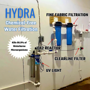 The HYDRA by TOMIGUNN is an advanced filtration system that uses ultraviolet (UV) light for disinfection and bio-filtration, in conjunction with fine fabric filtration.