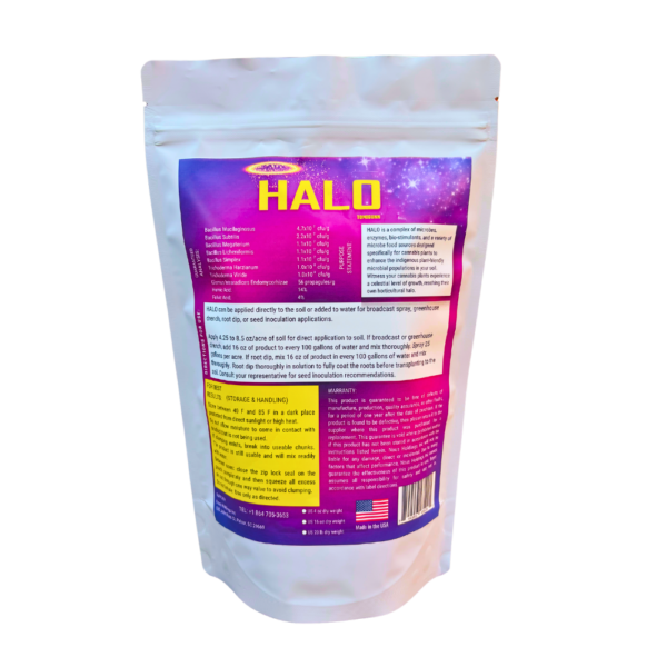 HALO enhances soil microbial diversity for cannabis and hemp cultivation through a balanced blend of beneficial bacteria, fungi, and organic acids. Bacillus strains solubilize phosphates and fix nitrogen, improving nutrient availability to roots and supporting vigorous vegetative growth.